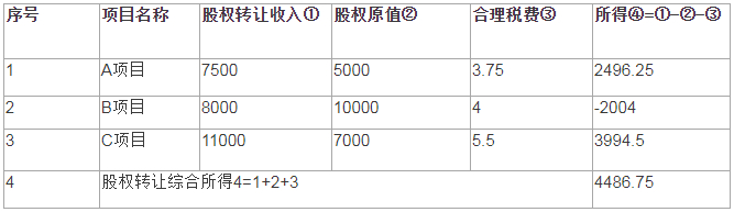 【例】ABC创投企业20×9年通过股权转让方式共退出A、B、C三个项目,股权转让所得计算如表所示: 单位:万元