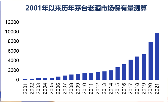 根据艾利艾智库走访的茅台老酒资深收藏家回忆,2017 年根据艾利艾智库综合大量市场调研,结合行业协会公布报告,通过理论模型设计,测算出茅台老酒的整体市场存量规模达到8500亿元以上。受到国内经济影响,从2022年开始茅台老酒价格在高位震荡并趋于稳定。基于茅台强大的品牌价值认可和稀缺性老酒品种的认知,茅台老酒表现出强大市场韧性。