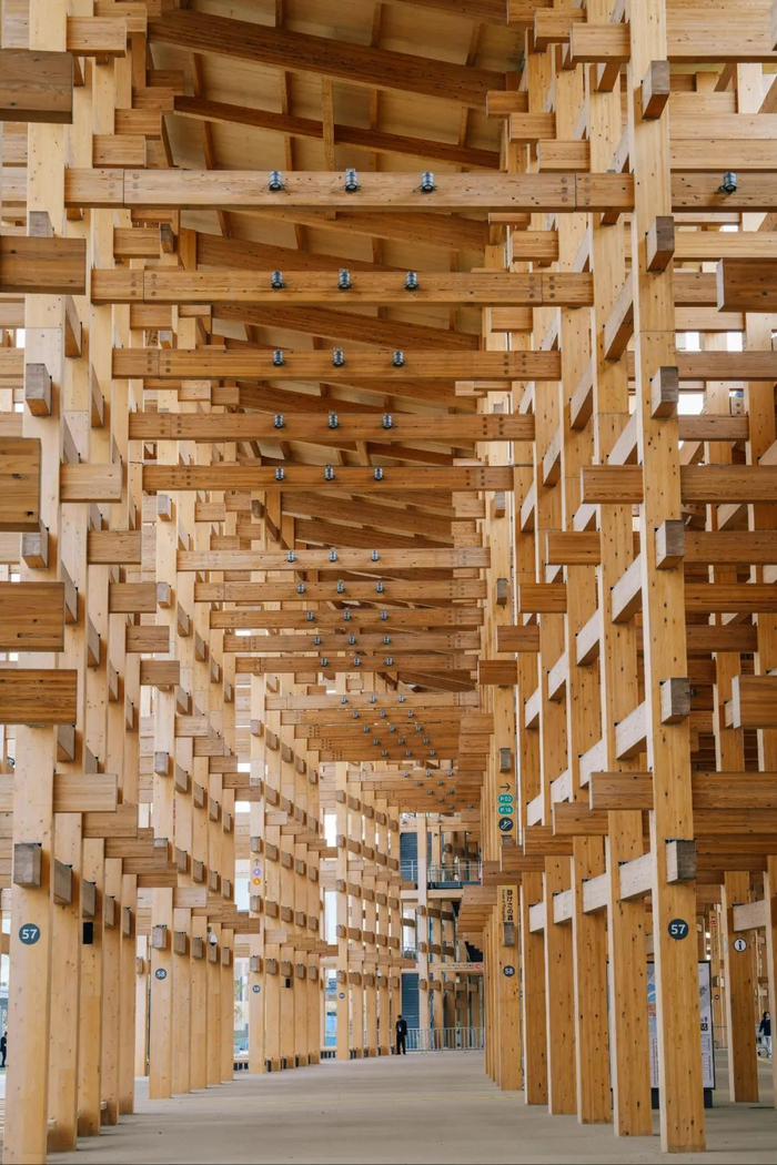 这场为期半年的文明盛会,由日本新生代建筑设计师藤本壮介担纲总体规划,其设计巧妙融合大阪海天一色的自然胜景与“多元一体”的核心理念,标志性的“大环”建筑以世界最大木构结构之姿傲然矗立,既运用现代工程技术,又传承日本传统连接智慧,为参观者提供独特的沉浸式体验。
