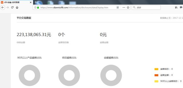 点牛金融官网数据显示,平台累计成交12.26亿元,待偿金额2.23亿元,逾期项目、逾期金额均为0。