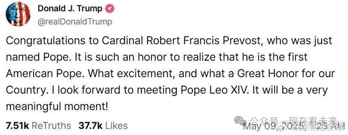 “他是第一位美国籍教皇,这真是莫大的荣耀,令人振奋,对我们的国家来说意义非凡。”特朗普周四在其自创的社交平台Truth Social上发文称:“我期待与利奥十四世教皇会面,这将是极具意义的一刻!”