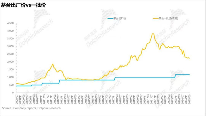 金融化在上升期就是助推火箭,帮助茅台坐稳大A第一股成为“酱香科技”。但在下行期也会连环下跌甚至跌破基本面,所以我们能看到茅台批发价跌破2000元心理安全价位。如果不能实现每年10%左右稳定的收益,黄牛和经销商自然会想办法止损,大量抛售平仓才是最优选择。