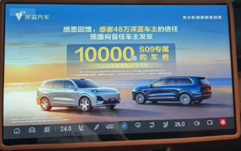 有车主表示,早上起来启动车机,直接把我惊呆了!深蓝汽车居然在我的车机上投放广告,这个不要脸的!「自己不顾老用户的感受,频繁降价,现在S09卖不出去了,居然采用这种低俗的宣传手段……」这一行为,车主不理解的时候,这车明明自己掏钱买了,为何还要被车企这么随意操控,并去质问深蓝汽车「这个车所有权到底是谁的」