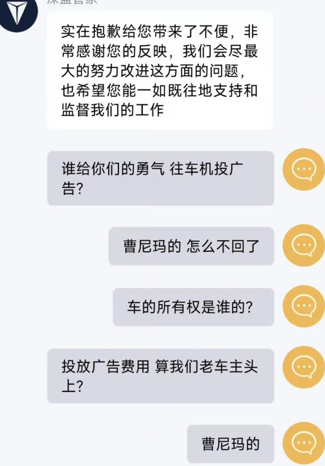 更有车主对着深蓝汽车客服连续飙粗口:「投放广告费用,算我们老车主头上?」
