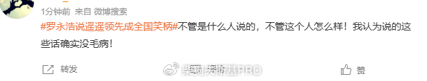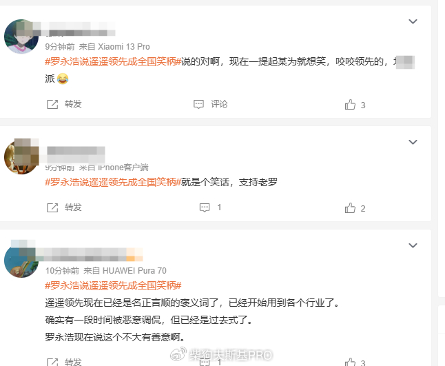 “说的对啊,现在一提起某为就想笑,咬咬领先的”“就是个笑话,支持老罗 ”“遥遥领先现在已经是名正言顺的褒义词了,已经开始用到各个行业了。确实有一段时间被恶意调侃,但已经是过去式了。罗永浩现在说这个不大有善意啊。 ”