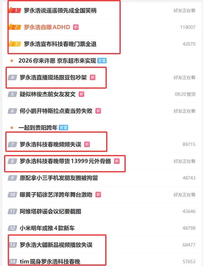 更离谱的是,这些话题还包揽热搜榜前三,前15话题中就有8个和罗永浩相关。