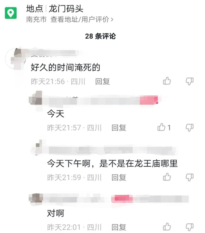 7月16日下午5点过,高坪区龙王庙附近,两个人不幸溺水!“当时救起来了一个,还有一个不知所踪。” 据现场网友称,没救起来的是个17岁学生娃,正在打暑假工。具体情况以相关部门通报为准。