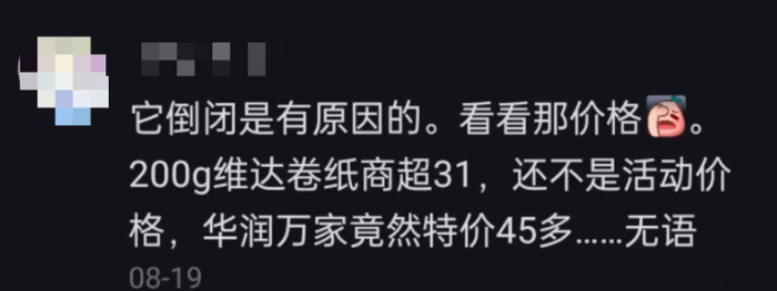 有人吐槽,逛过的几个传统大超市里,华润万家的东西最贵。同样一款洗发水,几卷抽纸,华润比同行贵了好几十块。