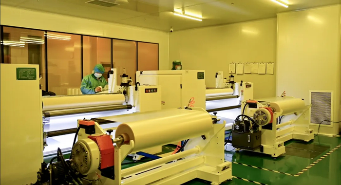 ▲东煦电子的生产车间在高性能胶带材料研发方面,高性能聚酰亚胺PI薄膜生产企业瑞华泰,已经掌握了从专用树脂合成到连续双向拉伸薄膜生产的完整制备技术。