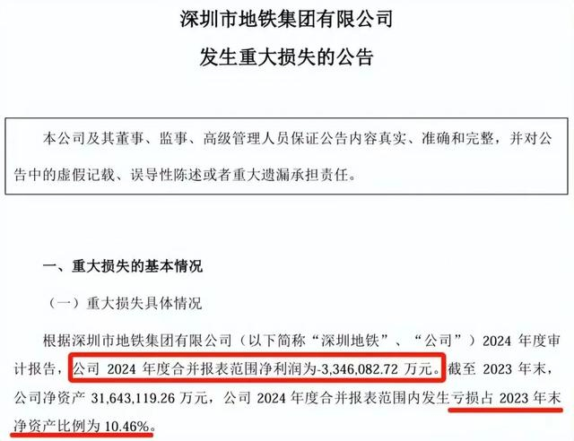 2025年5月,深圳地铁集团披露的财报,如同一枚深水炸弹,引发剧烈震荡:这家连续五年稳居“中国地铁利润王”的国有企业,在2024年亏损高达334.6亿元,相当于上年末净资产的10.46%。