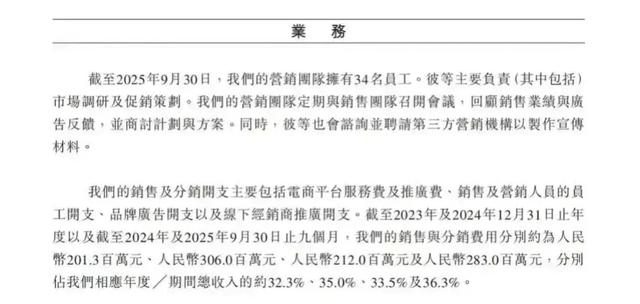 当然,如此高增长的背后,营销投入也越来越巨大。2023—2025年前三季度,爷爷的农场销售及分销开支分别高达2.01亿元、3.06亿元和2.83亿元,占同期总收入的比重约32.3%、35%及36.3%。相比之下,同期研发开支占收入的比重仅为2.8%、3.2%和2.2%,不足销售费用的1/10,形成鲜明反差。