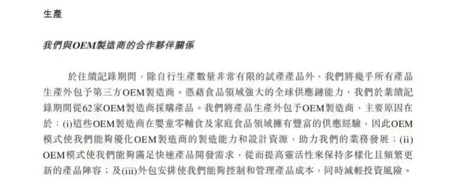 根据招股书描述,爷爷的农场采取全球化采购与本土化生产相结合的模式,但生产环节几乎完全依赖于国内代工厂。
