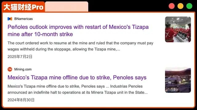 很多著名的大银矿全都停产了,比如秘鲁的Uchucchacua矿,去年5月停产,至今未复工,墨西哥Peñoles Tizapa矿罢工8个月,去年底刚复工,但产能只有60%。