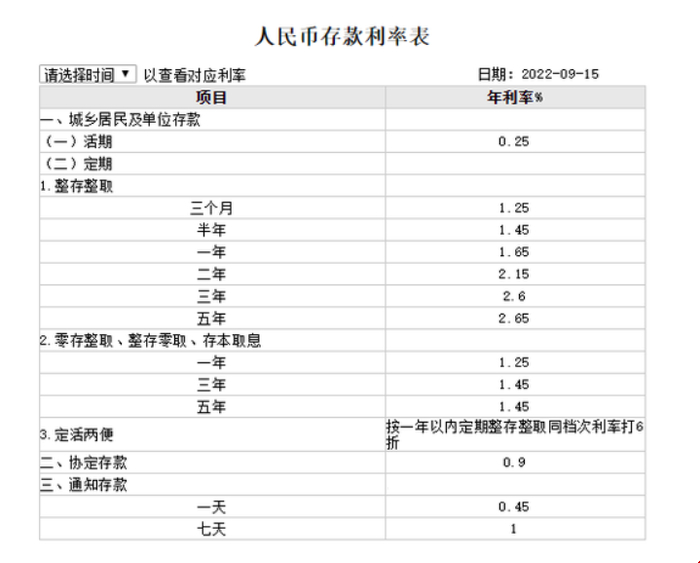 工商银行人民币存款利率表(2022.9.15)银行定期存款,如今真是食之无味,弃之又不知道还能买点啥。