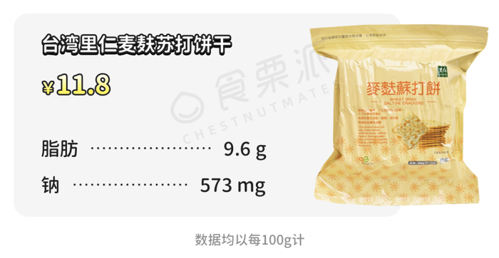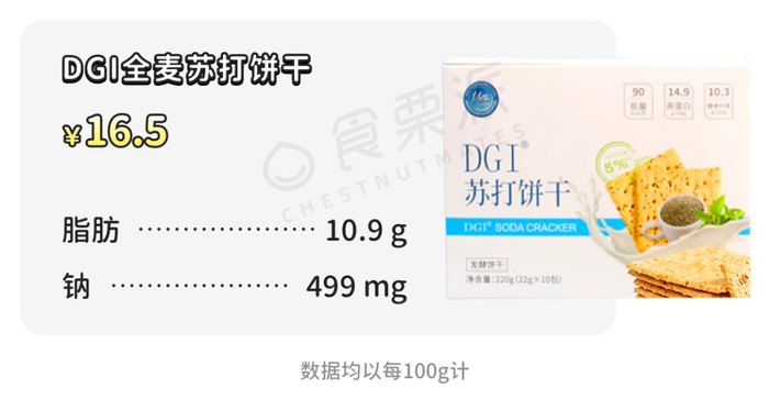 这款产品的脂肪含量,是60款苏打饼干中最低的。
