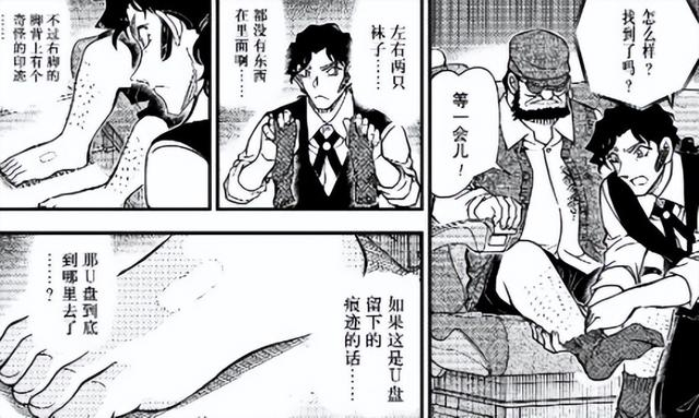 紧接着伊织无我扒掉了受害者的裤子,果然在里面发现了一个用早稻田速记法写的词语“袜子”,他赶紧查看受害者的袜子,结果的确看到了有U盘在这里的痕迹,不过U盘却消失了。