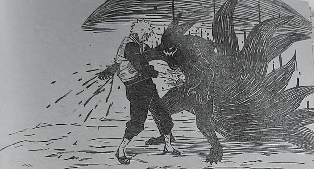 不过就在自来也小队还没撤退的时候,四尾和五尾的尾兽玉已经朝着他们轰了过来,自来也没办法只能挡在队员们前面,帮他们抵挡伤害。这是波风水门第一次见识到尾兽的力量,从那之后他终于明白漩涡玖辛奈体内的怪物究竟是何等恐怖的存在。