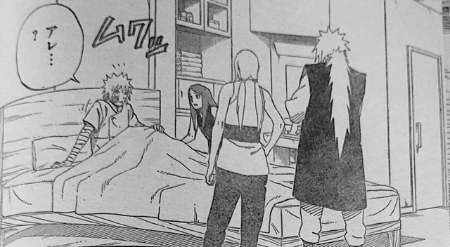 醒来后水门发现自己已经躺在了医院,自来也和纲手都在房间里,玖辛奈更是激动的抱住了水门。出院后水门和玖辛奈聊天,玖辛奈问水门是怎么研发出针对尾兽和人柱力的术的,水门说自己在战场上亲眼见过尾兽玉,所以就进行了参考,自己把这个术命名为“光轮冷冻点心旋毛自来也双式丸”。