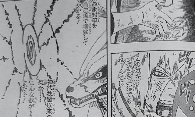 此时玖辛奈的心世界中,九尾依旧在蛊惑玖辛奈,还让玖辛奈解除封印,就在这个时候,玖辛奈本来松动的封印被人加固了,原来是水门加强了玖辛奈的封印。九尾看到水门的操作后也很震惊,它说水门明明不是漩涡一族的人却能用自己的招式加强封印,自从初代火影以来,它还没见过这种人。