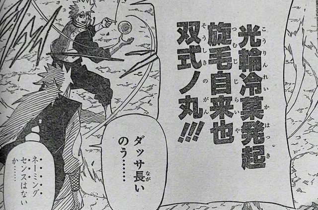 可没想到就是自来也的这个举动却给了水门灵感,他顾不上吃冰棒就再次尝试了新忍术,这次终于成功了,他给这个忍术命名为“光轮冷冻点心旋毛自来也双式丸”。而新忍术研发完成后,自来也因为还有任务在身离开了训练场,只剩下水门一个人休息。