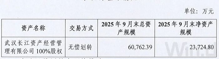 此次划转将导致武汉金控集团合并口径净资产减少2.37亿元,占2025年9月末净资产的0.43%。本次划转事项涉及的有关公司股权变动已经过有权机构决策。相关资产划转尚未完成工商登记变更。