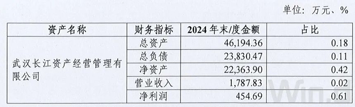 资料显示,武汉长江资管于2006年6月27日设立,注册资本1.442亿元人民币,经营范围包括:各类资产收购、资产处置及相关产业投资;企业和资产托管经营;投资咨询、财务顾问、企业兼并重组顾问及代理。