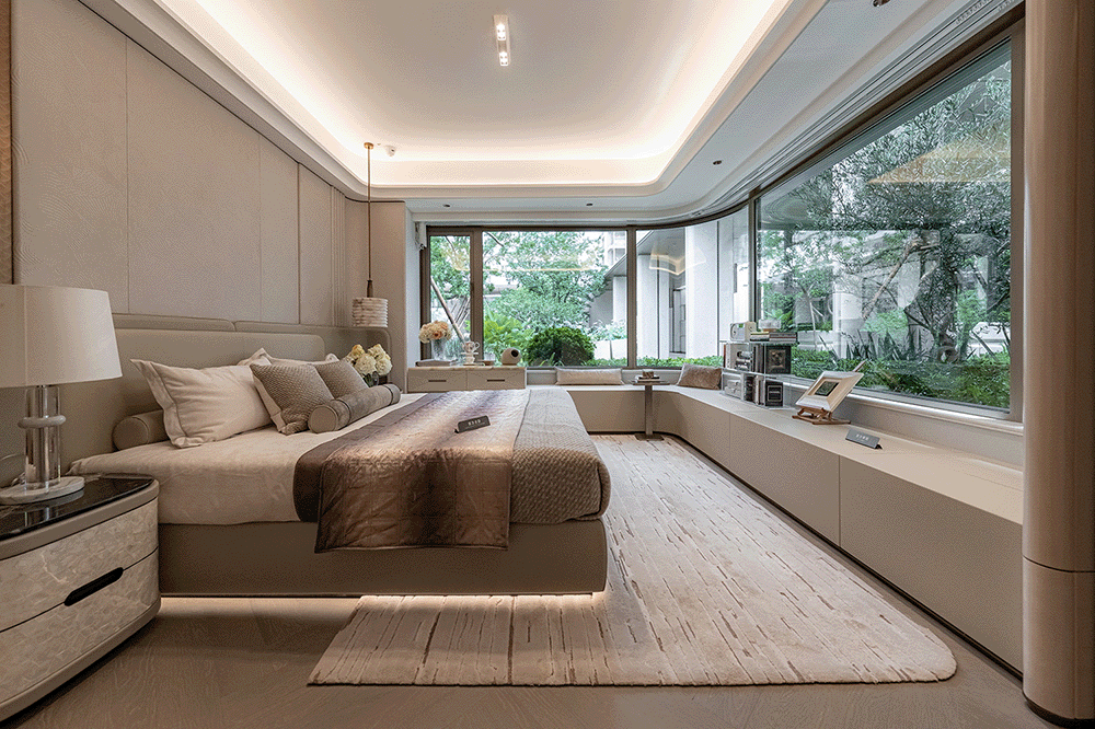 主卧拥有270°巨幕采光面,全屋几乎被美景包裹,堪比五星级酒店的总统套房。