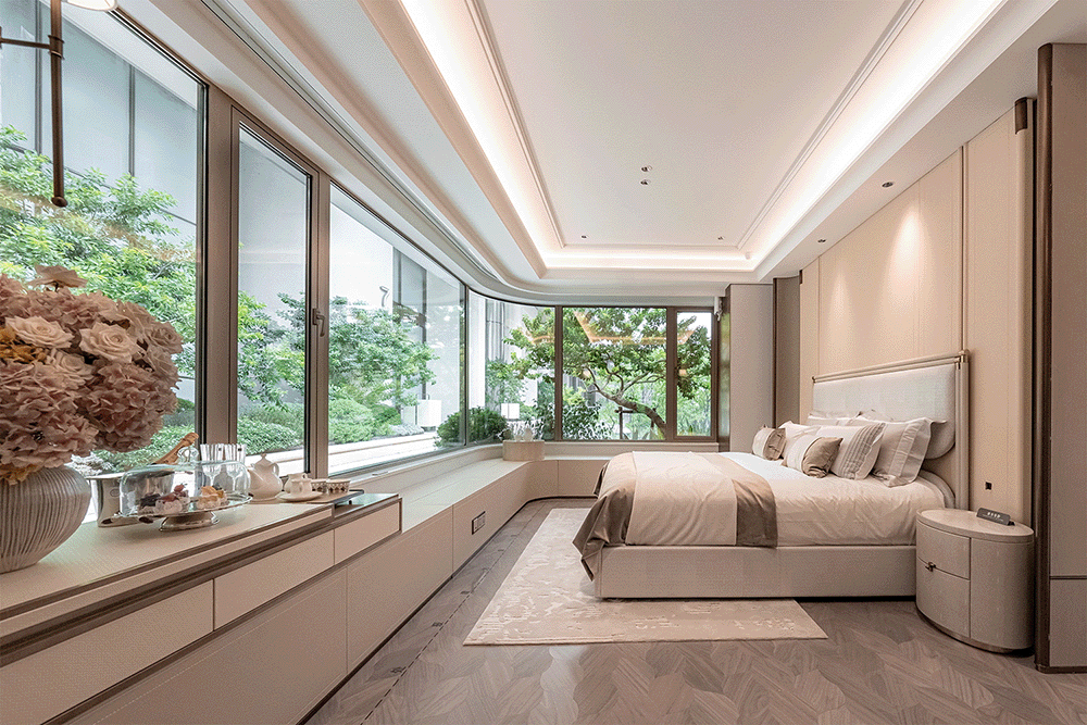 此外,套房式的主卧通过L型大飘窗,实现270°环幕飘窗,保障了完整的观景界面、流畅性视野。