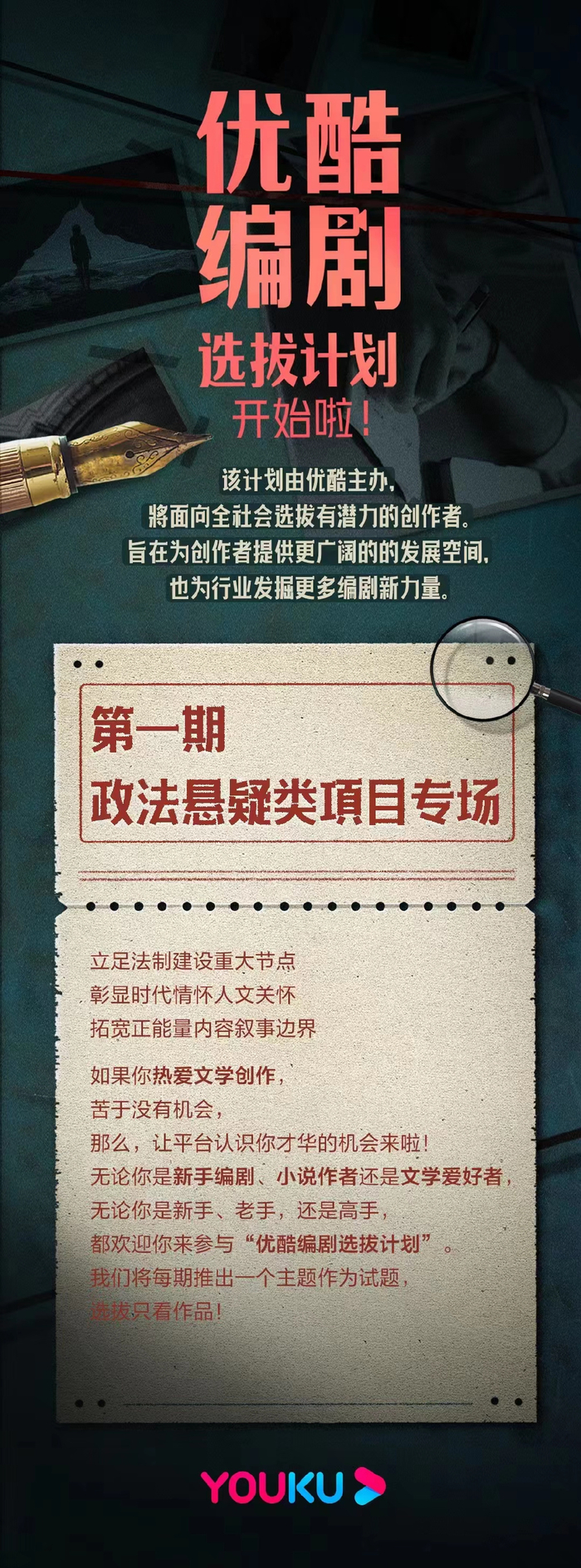 编剧方面,优酷也同样推出了多个重点活动,比如去年发起的优酷编剧选拔计划,以及近期宣布,优酷携手成都文旅共建“中国故事村”,开展长期编剧培训项目。