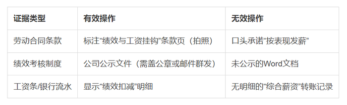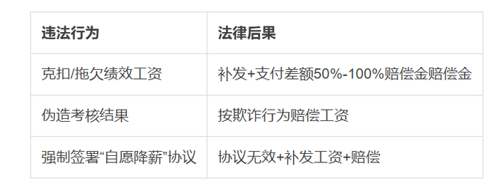 ✅行为定性:公司无合法依据扣绩效工资=违法!✅必存证据:合同条款+考核记录=仲裁稳赢✅真实案例:员工凭1份邮件追回全年绩效工资+赔偿金!✅致命陷阱:签空白考核表 ≠ 认栽!