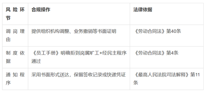 制度依据:《员工手册》明确将拒调岗视为旷工(需经民主程序制定)。