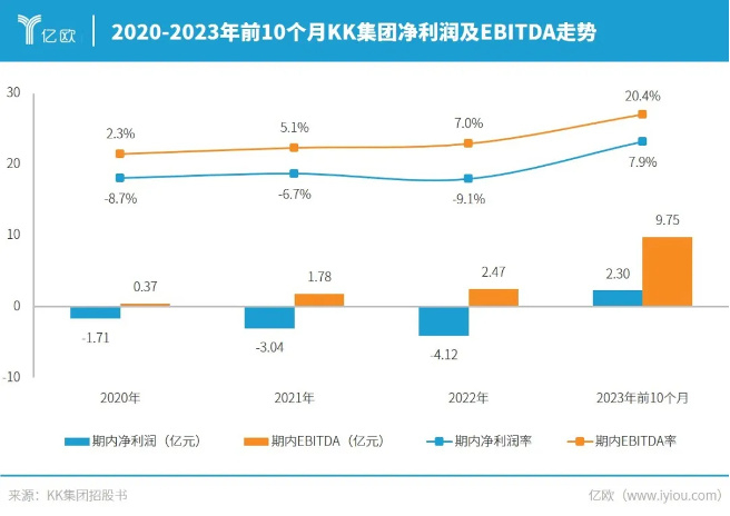 在各项指标均创新高的背景下,KK集团已实现了净利润转正,经调整净利润从2022年前10个月亏损2.5亿元,提升2023年前10个月的盈利2.3亿元,经营利润率转正为7.9%。
