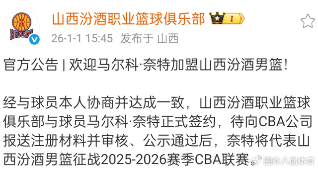 山西男篮官方宣布,36岁的外援奈特正式加盟,但这位外援充满了争议,毕竟除了年龄,他也只有1米9的身高,同时身体有些发福。当然,比起黑根斯来说,起码奈特有一定的得分能力,虽然球队的目标是前八,但大价钱请回了迪亚洛,又补充了奈特,目标显然是要冲击前四。