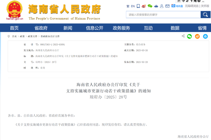 最近,海南省人民政府办公厅印发《关于支持实施城市更新行动若干政策措施》的通知,这也意味着,海南各地城市更新工作的推进将有更明确、更有力的政策措施支持和保障。