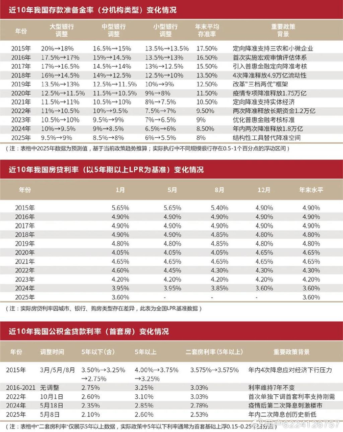 利率方面,公积金贷款利率下调0.25个百分点(首套房利率降至 2.6%),叠加商业贷款利率下行,进一步降低居民购房成本,有望提振居民购房需求。政策性利率下调将0.1个百分点,将带动贷款市场报价利率(LPR)同步下行约0.1个百分点,进而带动房贷利率进一步下调,预计幅度在0.1~0.25个百分点。