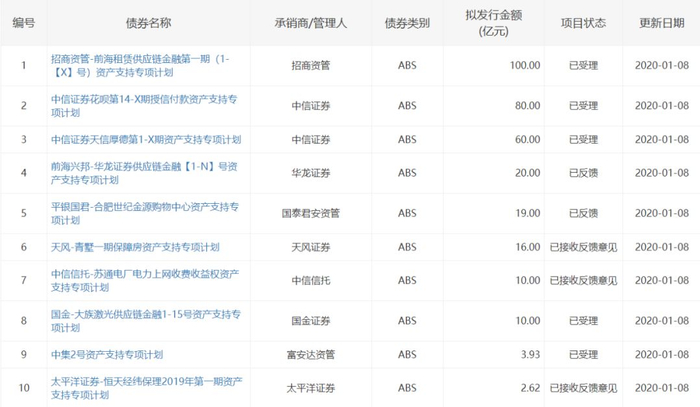 深交所ABS项目审批情况: