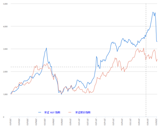 从市场吸引力来看,由于日本为低利率国家,其10年期国债利率一度为负,因此日本公募REITs 4-5%的股息收益率对于投资者而言具有较强的吸引力,这一股息收益率水平也高于日本股票市场2-3%的股息收益率,且在指数表现上优于后者(详见图2及图3)。