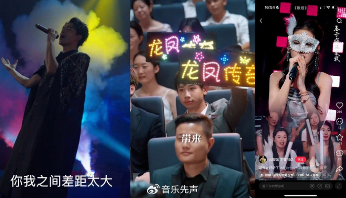 如《开局一首天后燃爆全场》《天后进化手册》《曲尽星河灿》《开局离婚天后演唱会现场请我出道》等多部音乐类题材的短剧中,主角舞台段落会直接对口型演绎凤凰传奇、张韶涵、邓紫棋、胡彦斌、李宗盛等歌手的原唱版本,甚至还出现了疑似为规避风险而改成环境音、现场氛围声的处理方式。
