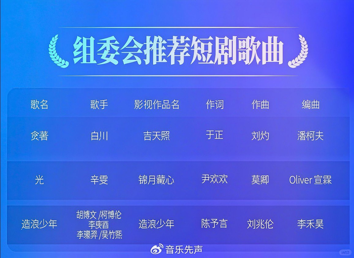 今年9月,在厦门举办的2025中国数字音乐产业大会上,短剧歌曲也首次被纳入专业评价体系,短剧《吉天照》主题曲《贪著》、短剧《锦月藏心》主题曲《光》、短剧《造浪少年》主题曲《造浪少年》,荣获组委会推荐短剧歌曲。