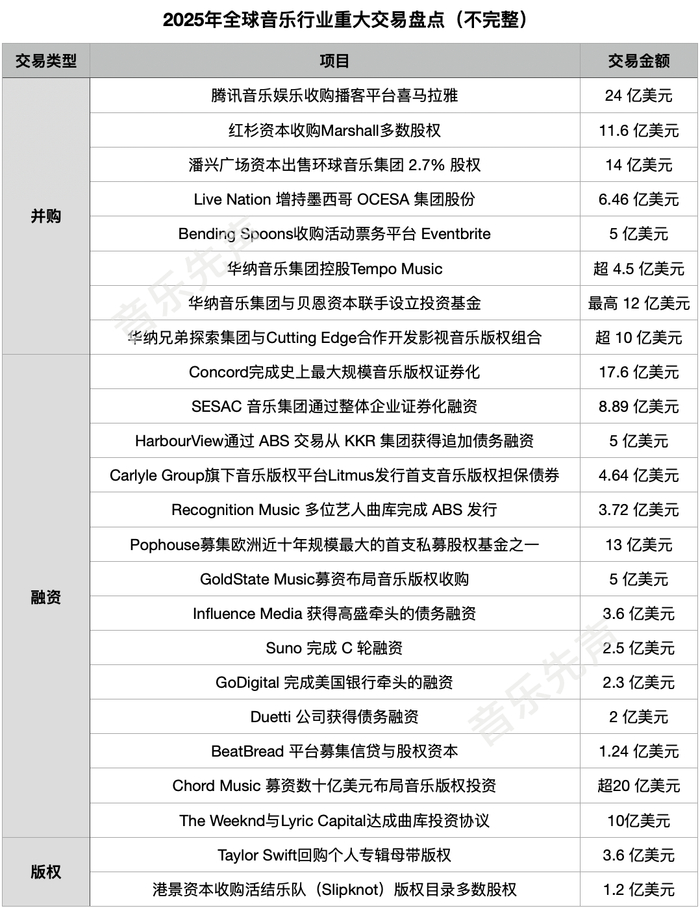2025 年的音乐行业资本交易,呈现出明显的结构性分野。