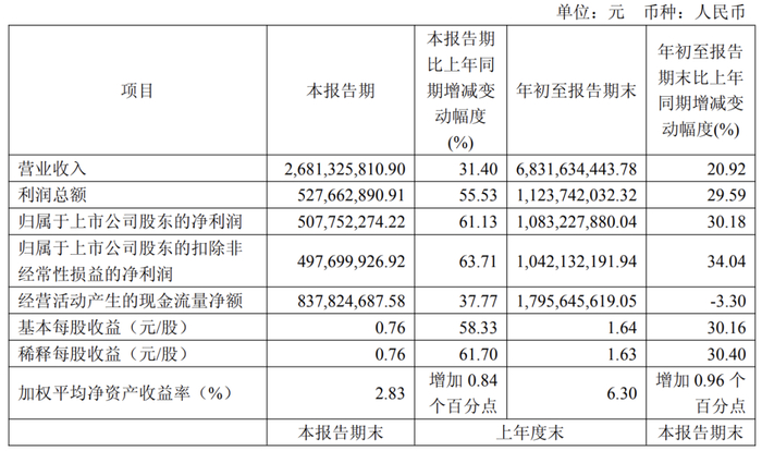 今年前三季度,兆易创新实现营收68.32亿元,同比增长20.92%,实现净利润10.83亿元,同比增长30.82%;其中三季度单季度实现营收26.81亿元,同比增长31.4%;实现净利润5.078亿元,同比增长61.13%。