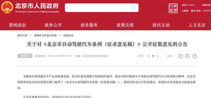 近日,由北京市经济和信息化局发布的《北京市自动驾驶汽车条例(征求意见稿)》(以下简称“《条例》”)在汽车行业内掀起了一阵波澜。