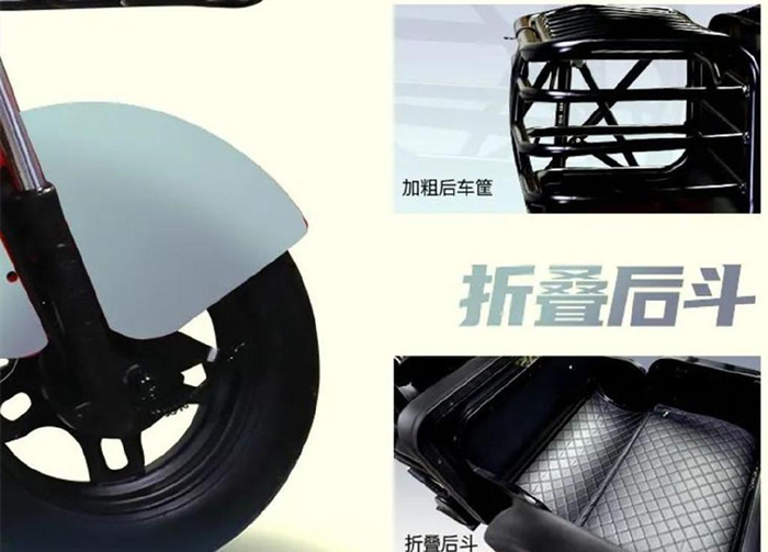 其他配置方面,赛鸽V8还配备了27管液压前叉及弹簧座椅,其可有效过滤路面颠簸,特别是在山路骑行时,车辆震感可下降到最低。而搭载的真空轮胎,防穿刺能力也会更出色。另外,车辆还拥有加粗后车筐、折叠后斗等差异化配置。