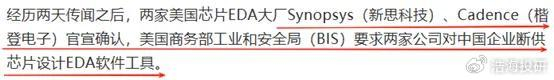 EDA市场集中度较高。全球EDA行业主要由楷登电子、新思科技和西门子EDA垄断。根据中商产业研究院2024年7月报告,中国EDA市场三大企业占比超70%。所以,如果这三家企业真的出现断供,影响可见一斑。