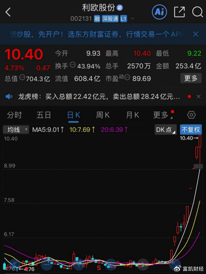 2026年刚满半月,利欧股份便收获10天6板、累计涨幅超84%的优异战绩,这在A股绝对流量焦点的AI应用板块也同样亮眼。截至1月15日收盘,公司股价报10.40元/股,总市值突破700亿元。当日成交量达2570.36万股,成交额飙升至253亿元,换手率高达43.94%。此前一日其成交额仅为59.45亿元。