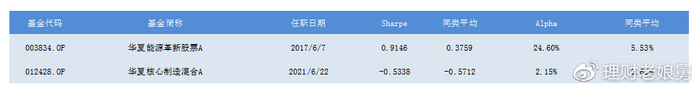 以华夏能源革新混合A为例,任职以来的Sharpe为0.9146,远远高于同类平均的0.3759,代表在承担相同风险的情况下能够获得超越同类平均的收益率。Alpha收益能力接近25%,代表相对大盘的超额收益远远高于同类平均,超额收益能力较强,业绩质量较高。2021年以来业绩质量有衰退的趋势,以华夏核心制造混合A为例,该基金无论从Sharpe和超额收益都大幅缩水,其实这和所有成长风格基金一样,当市场下行时业绩衰减比较明显。