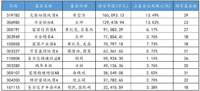 作为专业的基金买手,FOF基金经理的视角值得参考,他们买的最多的10只债券基金如下表。