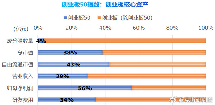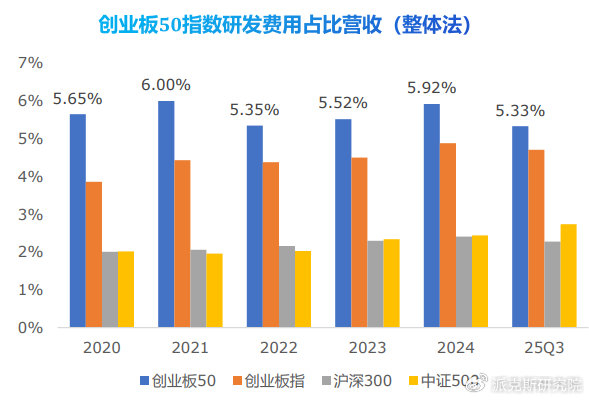 而创业板50,是几大指数里,研发费用占比最高的指数。