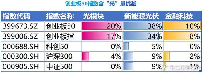 创业板50有46%的持仓是目前市场最火热的信息技术,比如光模块、PCB、芯片、云计算、AI等;
