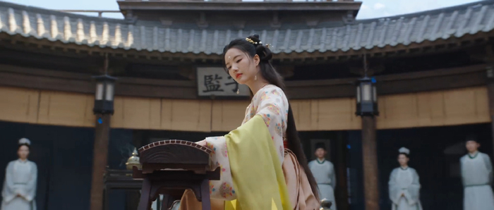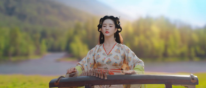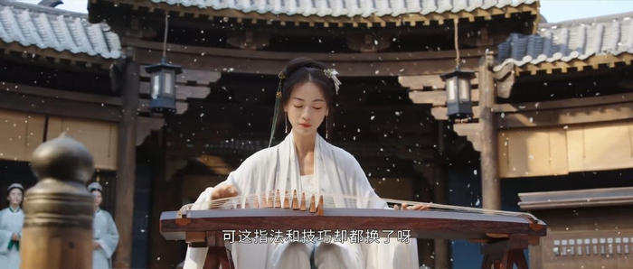 还有就是姜梨和姜若瑶比琴时的特效,姜若瑶仿佛坐在旷野之外,这个设计还好理解,就是为了显示出姜若瑶所奏之曲够大气,意境非凡。